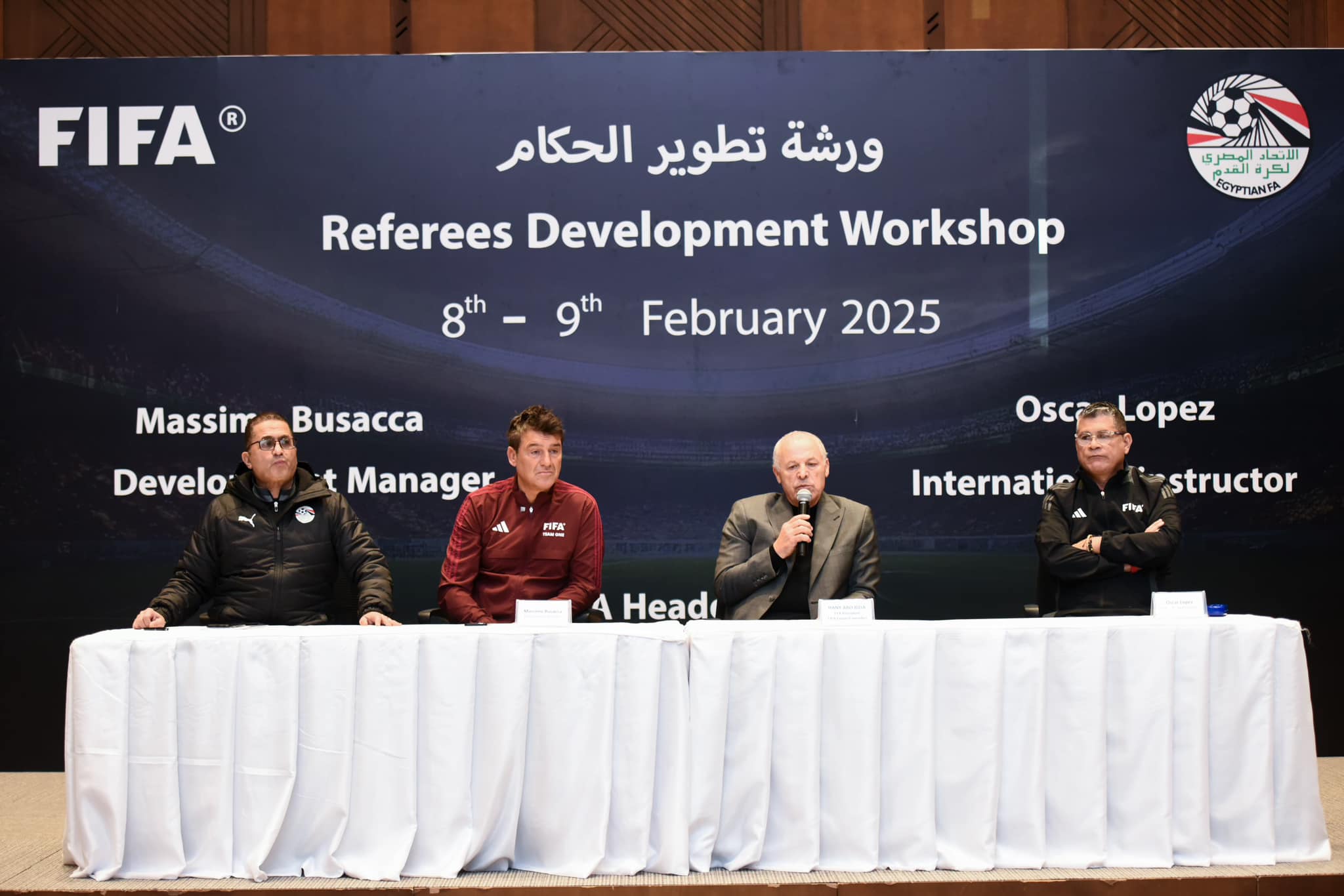 انطلقت ورشة عمل تطوير الحكام باتحاد الكرة تحت إشراف FIFA ، وتعقد الورشة على مدار يومين بحضور ماسيمو بوساكا مدير لجنة الحكام بالاتحاد الدولي، كما يحاضر بها أوسكار جوليان رويز المحاضر بالاتحاد الدولي.