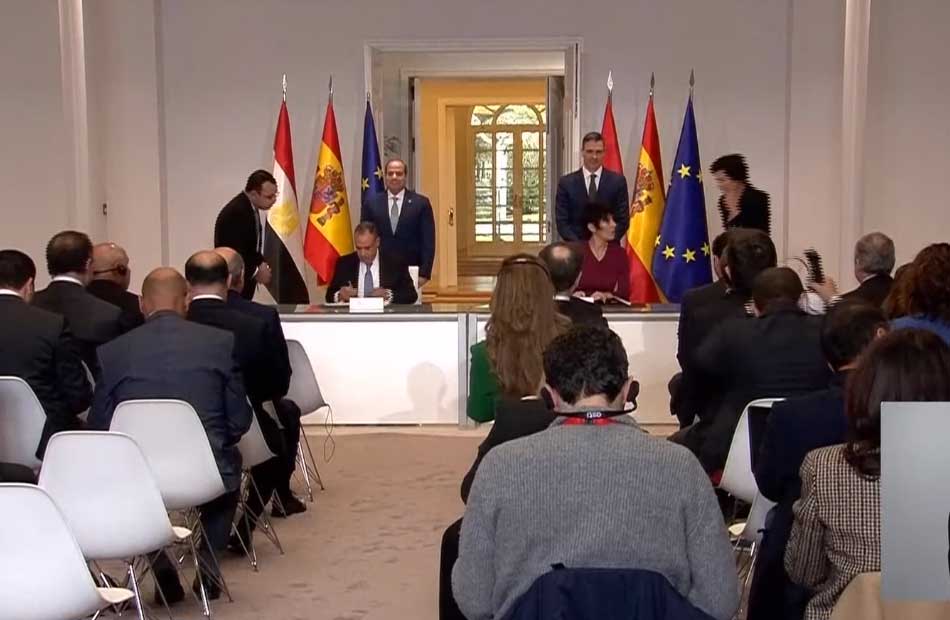 الرئيس السيسي ورئيس وزراء إسبانيا يوقعان على الإعلان المشترك لترفيع العلاقات إلى مستوى الشراكة الاستراتيجية