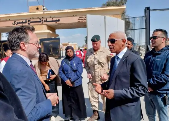 واستعرض المحافظ الجهود المصرية المبذولة في إستقبال المساعدات وتخزينها وإعادة إرسالها إلى قطاع غزة ، بجانب إستقبال الجرحي والمرضي الفلسطينيين للعلاج في المستشفيات المصرية.