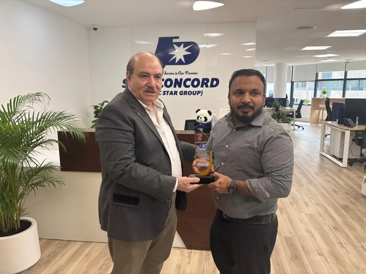 As a token of appreciation, Alzafer wings cargo services Company presented Star Concord with a memorial Trophy