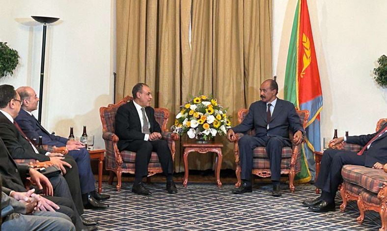 أجرى وزير الخارجية والهجرة الدكتور بدر عبد العاطي، زيارة لأسمرة، أمس، التقى خلالها مع رئيس إريتريا أسياس أفورقي، حيث نقل خلالها رسالة شفهية من الرئيس عبد الفتاح السيسى إلى نظيره الإريتري بشأن تعزيز العلاقات الثنائية وتطويرها فى مختلف المجالات، فضلاً عن عدد من القضايا الإقليمية ذات الاهتمام المشترك للبلدين الشقيقين.
