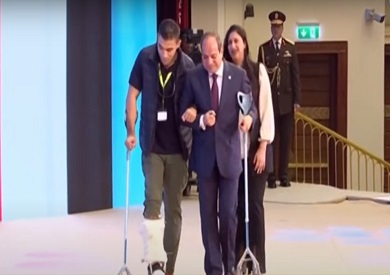 لفتة إنسانية.. الرئيس السيسي يرافق مصابي هيئة الشرطة أثناء تكريمهم باحتفالية العيد