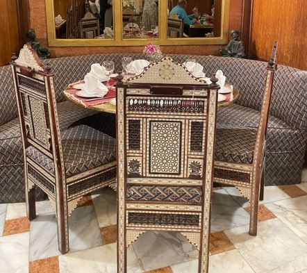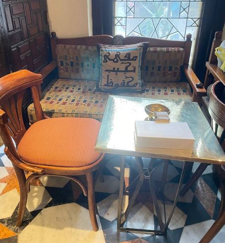 من لحظة دخولك إلى المكان، تأخذك أجواءه إلى عالم آخر، إذ تشعر وكأنك قد انتقلت إلى عصر الخلافة العثمانية. يرحب بك الموظفون الذين يرتدون ملابس مستوحاة من زي السلاطين العثمانيين، بينما تزين النقوش والزخارف الإسلامية الجدران، مما يضفي على المكان طابعًا فنيًا فريدًا. أما النجف النحاسي، فيضيف لمسة من الفخامة، وسط صور الأديب نجيب محفوظ التي تملأ المكان، مستعرضة تاريخ المكان وزواره البارزين الذين عاشوا فيه لحظات من الإبداع والإلهام.