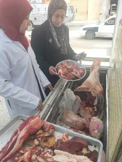 في إطار المتابعة المستمرة لضمان سلامة الغذاء وحماية صحة المواطنين قامت الدكتور/ عبير محمد حجاب مدير عام الطب البيطري و الدكتور/ شيماء سليمان فيصل مدير إدارة المجازر والتفتيش على اللحوم، بحملة تفتيشية مفاجئة استهدفت عدداً من محال الجزارة بنطاق مدينه العريش