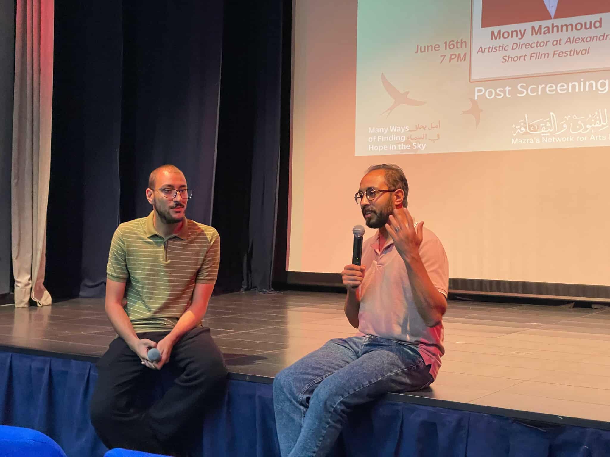 وتضمن اللقاء، حوارًا مع عدد من المخرجين الذين عُرضت أفلامهم خلال الأمسية، من بينهم يمنى صلاح (مخرجة فيلم قشطة)، ومحمد بيومي (مخرج فيلم خمس نجوم)، وخالد غريب (مخرج فيلم ليل العاشقين)، ورهف أحمد (مخرجة فيلم نسمة).