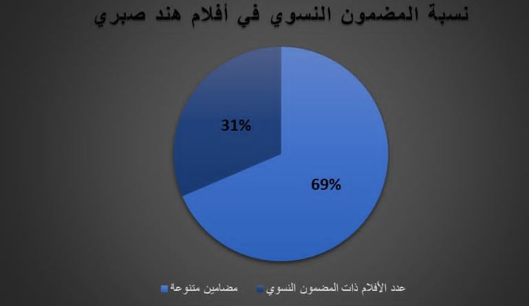وهذا الحديث يحيلنا إلى أرقام أخرى ظهرت من خلال الرصد، ألا وهي المتعلقة بالمضمون النسوي في أعمال هند صبري السينمائية، وتُظهر الأرقام أن هند قدمت 11 فيلماً يمكن وضعها تحت بند المضمون النسوي، مثل: “لعبة الحب، مذكرات مراهقة، عرايس الطين، نورا تحلم، صمت القصور، صباح الفل”، إلى جوار قضايا أخرى كبرى برزت في أعمالها مثل الإرهاب والانضمام إلى تنظيمات التطرف الديني، في أفلام مثل: “زهرة حلب، وبنات ألفة”، حيث عادة يتوفر في الأفلام التي تشارك فيها هند عنصر المضمون الدرامي القوي، حتى ذات الطابع الكوميدي، مثل فيلم “عايز حقي”، والذي ناقش احتياجات المواطن المصري البسيط والفجوة بينه وبين ما تقدمه الحكومة.