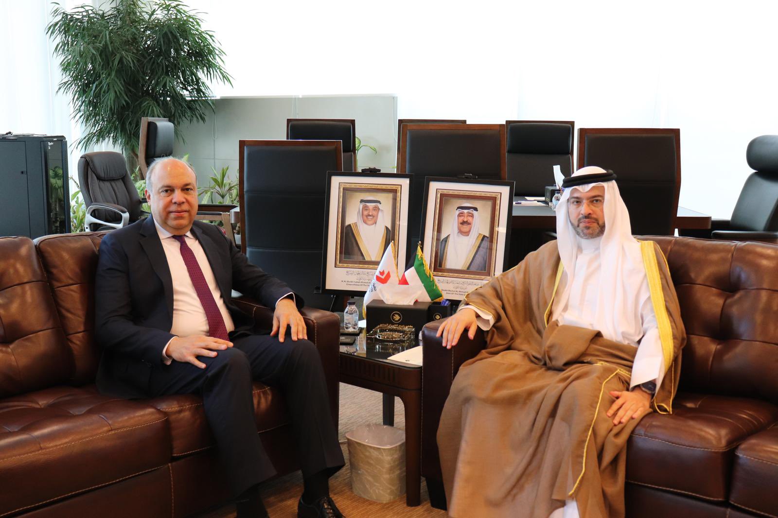 استقبل رئيس الإدارة العامة للطيران المدني الكويتي المهندس حمود مبارك الحمود الجابر الصباح، اليوم في مكتبه في المبنى الرئيسي، الدكتور سامح الحفني، وذلك بحضور سفير القاهرة لدى الكويت أسامة شلتوت.