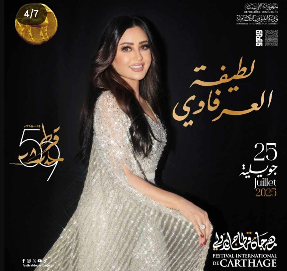 تستعد المطربة التونسية لطيفة لإحياء حفل غنائي ضمن فعاليات الدورة ٥٩ من مهرجان قرطاج الدولي بتونس يوم ٢٥ يوليو الجاري على خشبة المسرح الكبير في قرطاج.