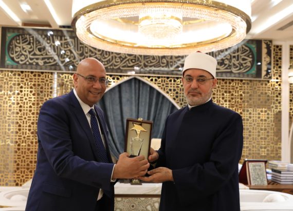 كما أعرب راتب عن سعادته بحفاوة الاستقبال، مؤكدًا على الاهتمام بالتعاون مع مؤسسات وهيئات الدولة المصرية و الارتقاء بمنظومة الخدمات المقدمة وتحفيز التعاون المشترك وقد قام بتقديم الدرع لفضيلة الأستاذ الدكتور/ نظير عياد – مفتي الجمهورية و الأمين العام لدور وهيئات الإفتاء في العالم.