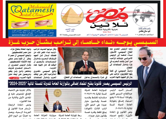 تقدم صحيفة مصر تلاتين عدد أسبوعي يصدر عن الصحيفة كل يوم خميس نستعرض فيه ونوثق أهم أحداث الأسبوع على المستوى المحلي والعالمي.