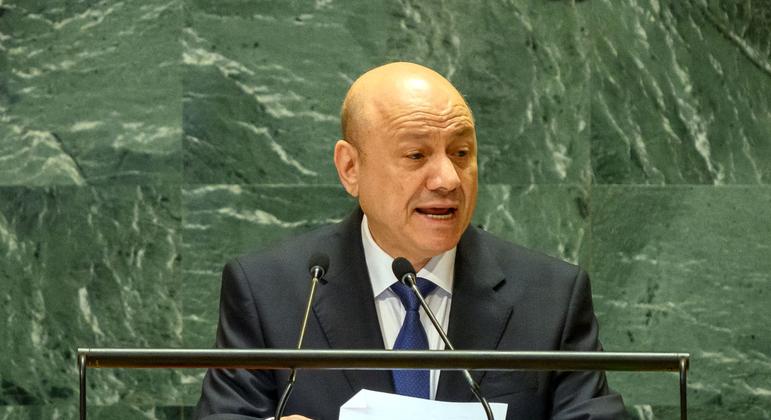 في خبر لقناة “القاهرة الإخبارية” أشاد رئيس المجلس الرئاسي اليمني رشاد العليمي أمام الجمعية العامة للأمم المتحدة، بجهود الأمين العام للأمم المتحدة أنطونيو جوتيريش فيما يخص الأزمة اليمنية، والأزمة اليمنية لم تعد داخلية بل باتت اختبارا لمصادقية النظام الدولي.