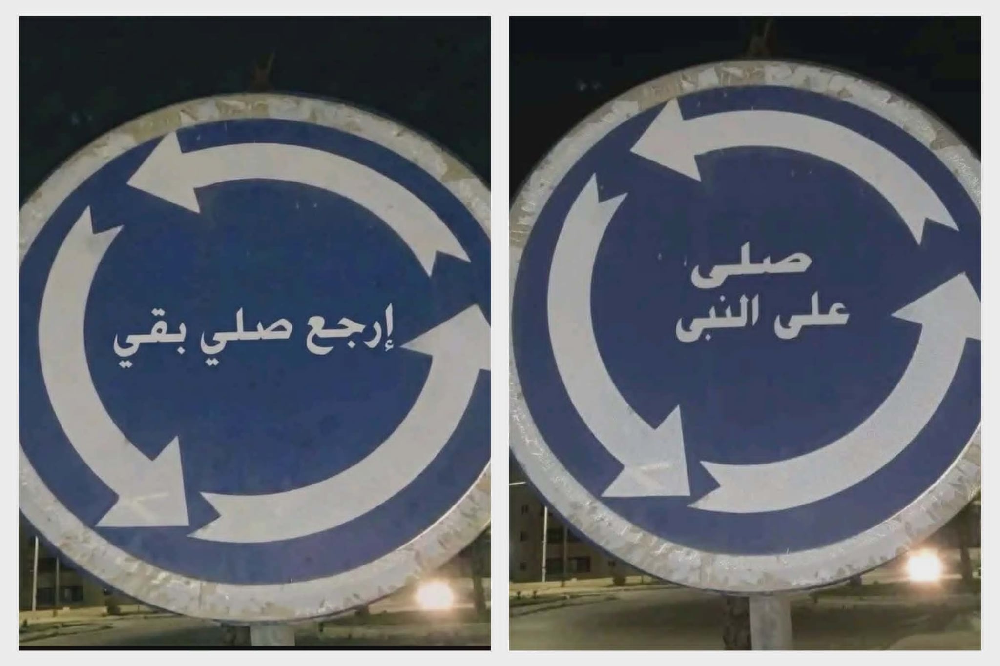 شهدت مواقع التواصل الاجتماعي خلال الساعات الماضية تداولا واسعا لصورتين للافتتين تحملان عبارتين دينيتين، وهما: «صلّي على النبي» و«ارجع صلّي».