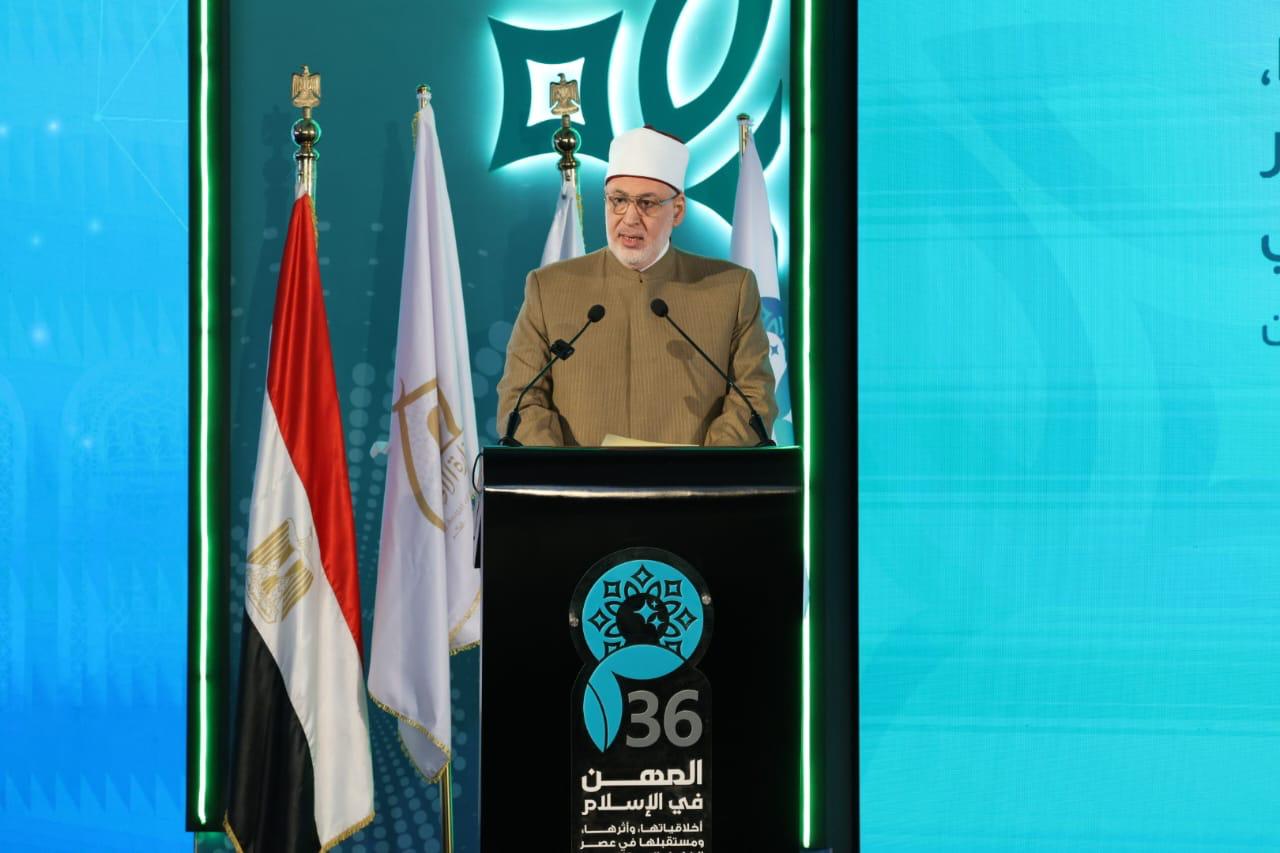في كلمته بالمؤتمر الدولي السادس والثلاثين: مفتي الجمهورية يؤكد ضرورة ربط تطور المهن بالقيم الأخلاقية في عصر الذكاء الاصطناعي