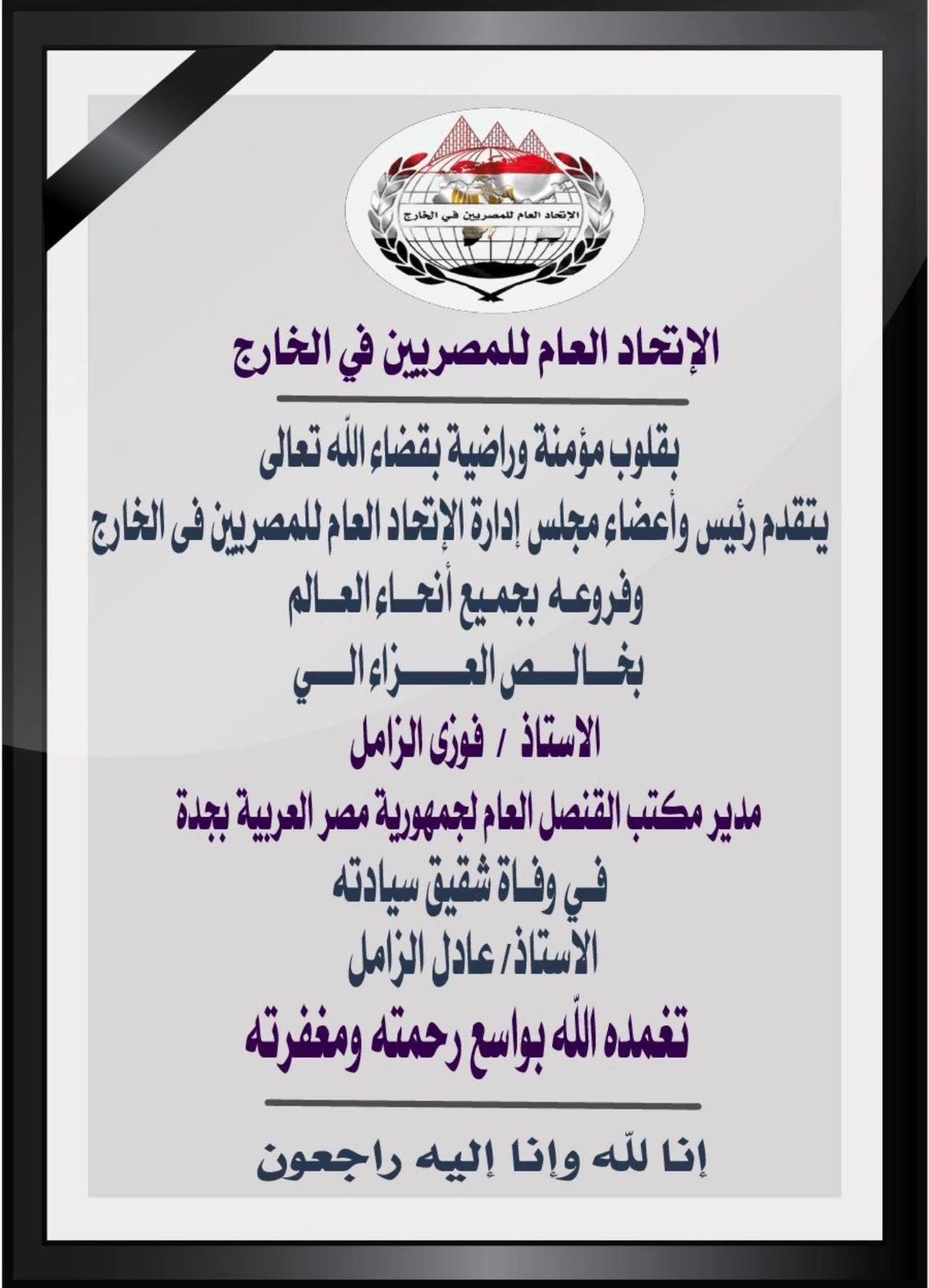 عزاء واجب.. “مصر تلاتين” ينعي شقيق الأستاذ فوزي الزامل مدير مكتب القنصل العام بجدة