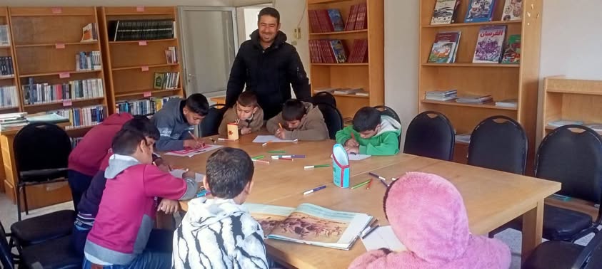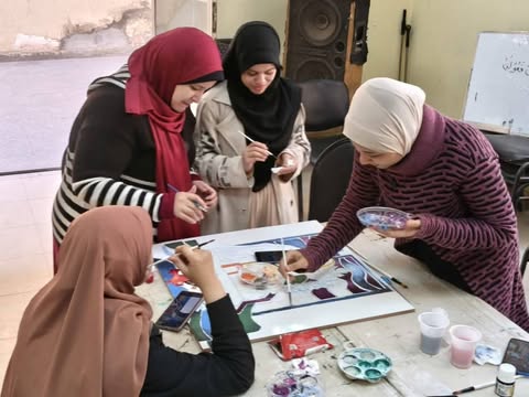 ورشة فنية في الرسم بمكتبة نجيلة الثقافية