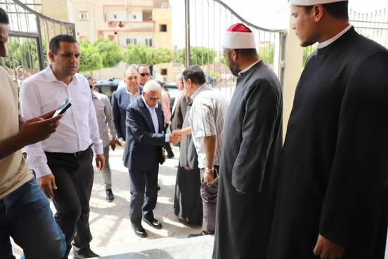 محافظ شمال سيناء يرافقه مدير مديرية أوقاف شمال سيناء والجهاز التنفيذي للمحافظة في زيارة ميدانية لقرية الروضة