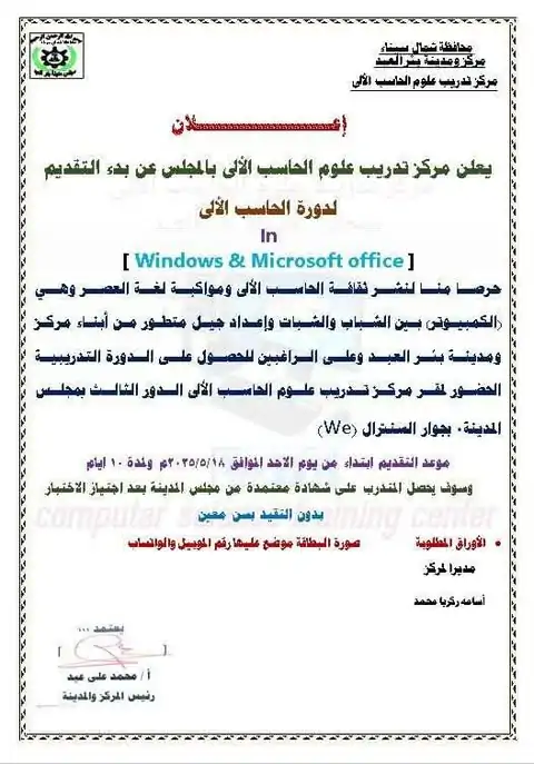 نيابة شمال سيناء تطلق دورة تدريبية في الحاسب الآلي بالتعاون مع وزارة الاتصالات وتكنولوجيا المعلومات