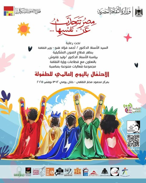 وزارة الثقافة تحتفي باليوم العالمي للطفولة بفعاليات فنية وثقافية متنوعة تحت عنوان “أبناؤنا في متاحفنا”