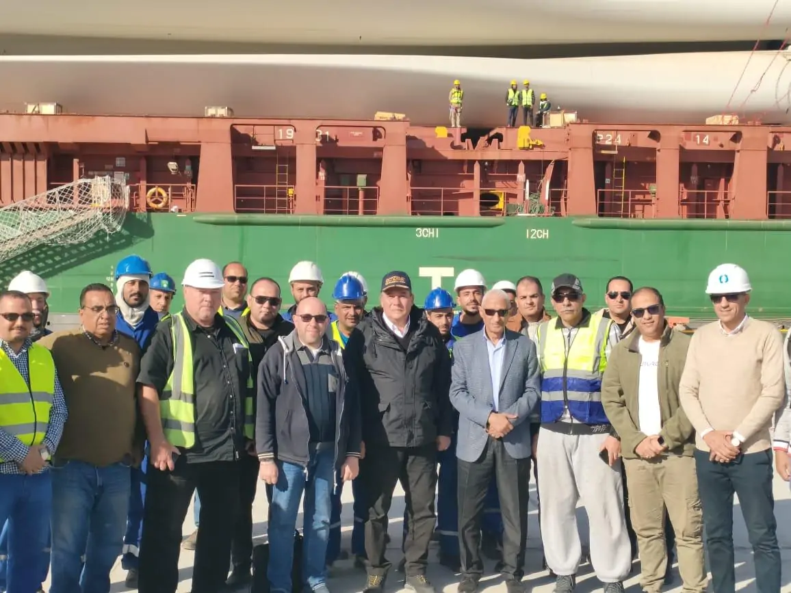 بالصور … محافظ شمال سيناء يستقبل سفينه محملة بمهمات إنشاء محطة كهرباء طاقه الرياح .