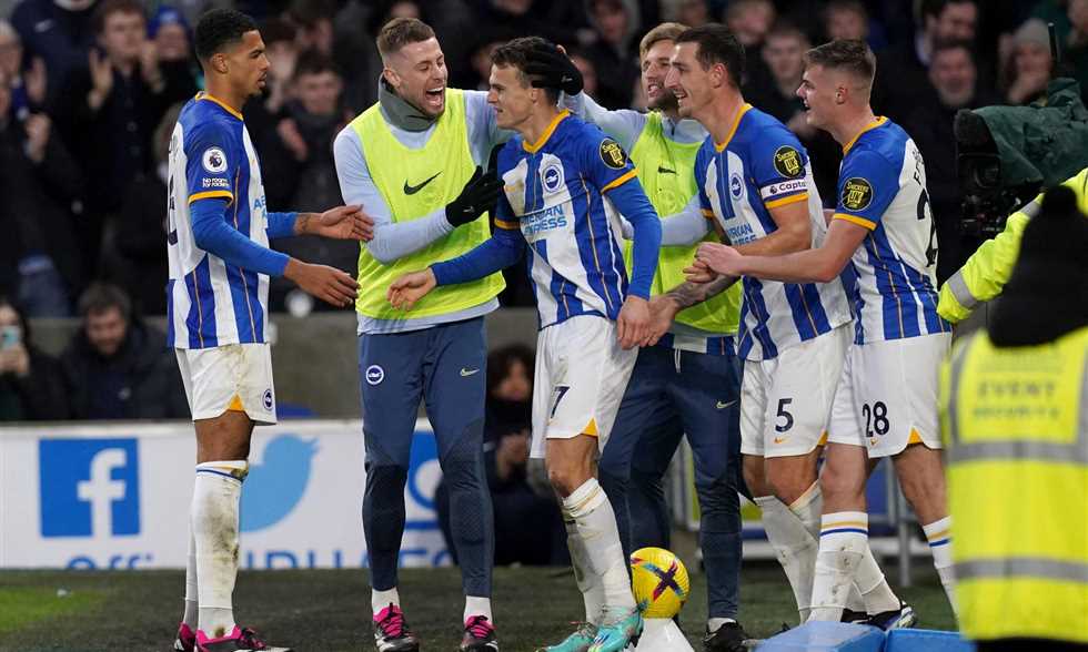 ورفع برايتون رصيده إلى النقطة 42 واترقى في جدول ترتيب الدوري الإنجليزي إلى المركز السابع بنفس رصيد ليفربول.