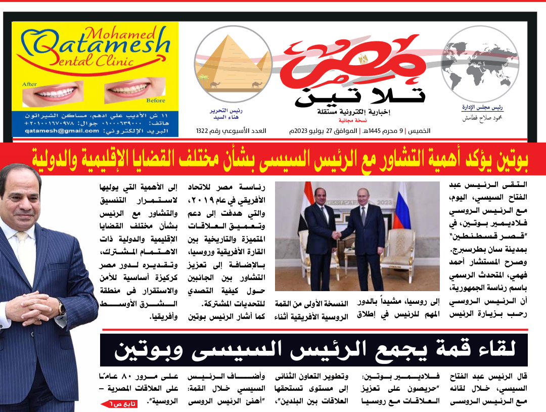 تقدم صحيفة مصر تلاتين عدد اسبوعي يصدر عن الصحيفة كل يوم خميس نستعرض فيه ونوثق أهم أحداث الاسبوع على المستوى المحلي والعالمي .
